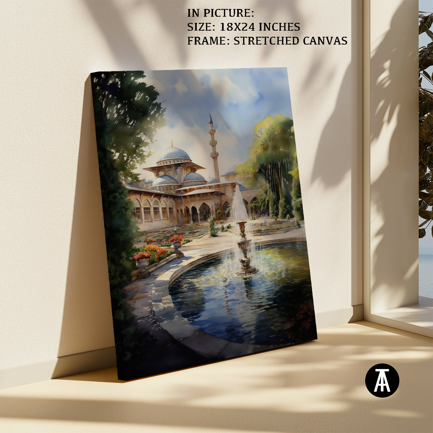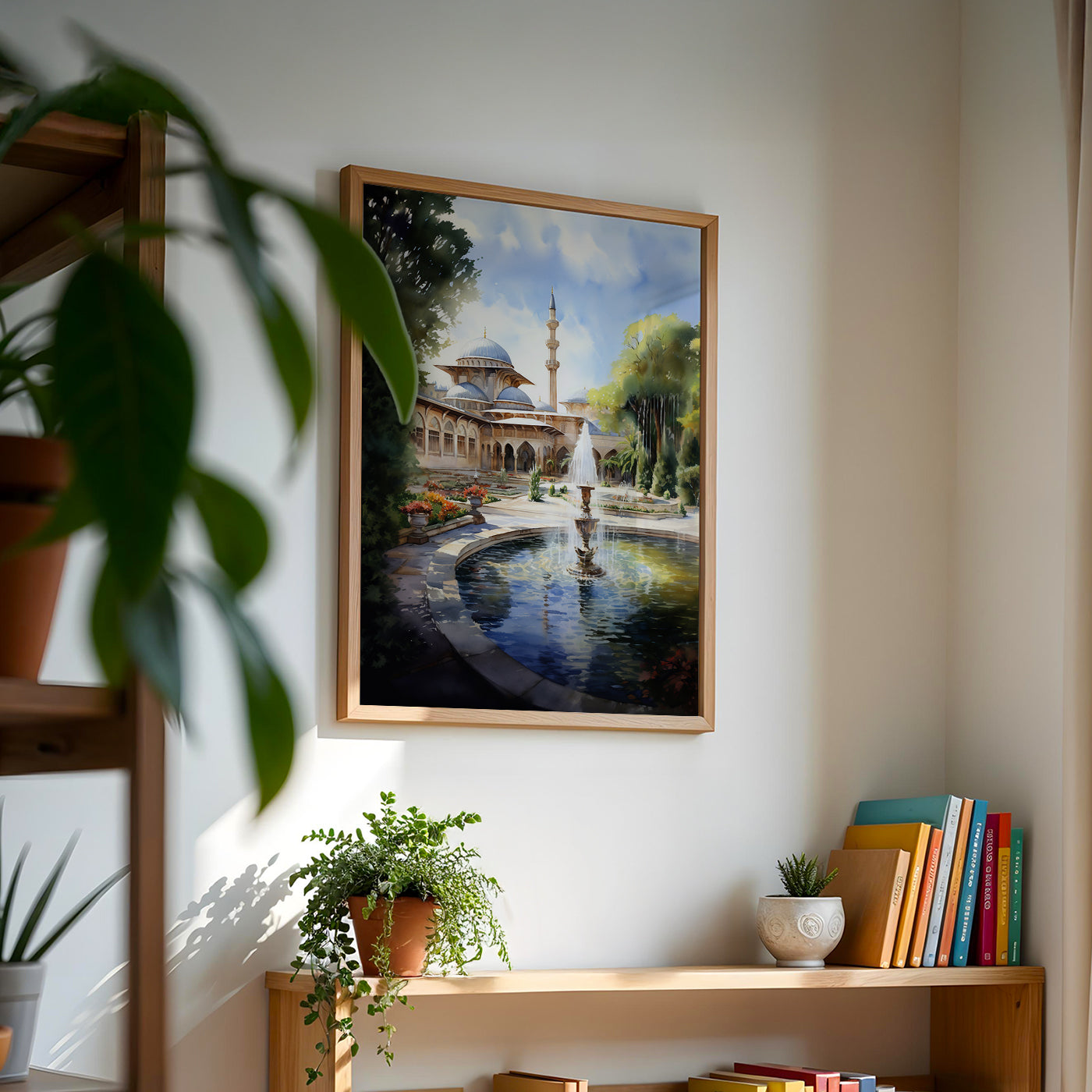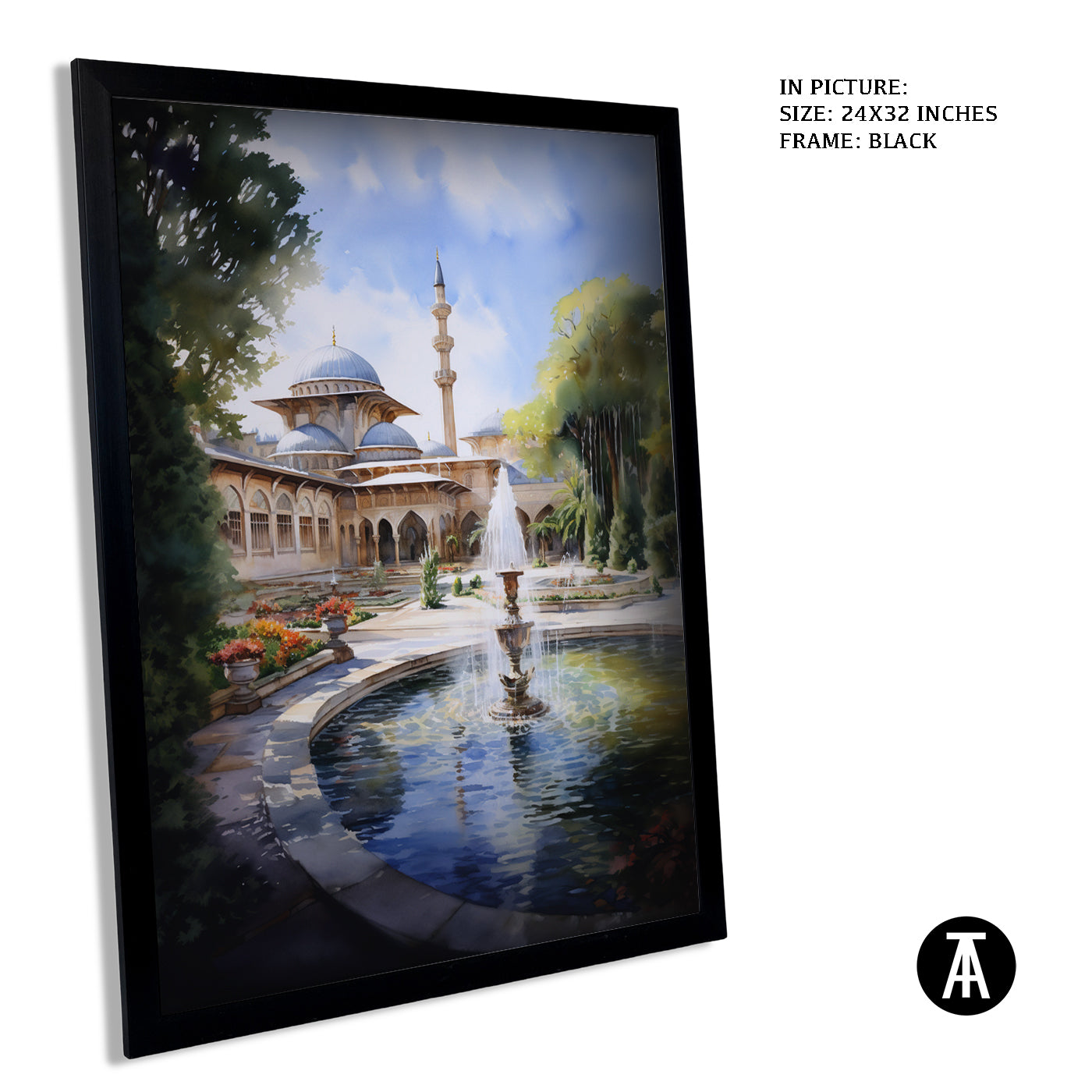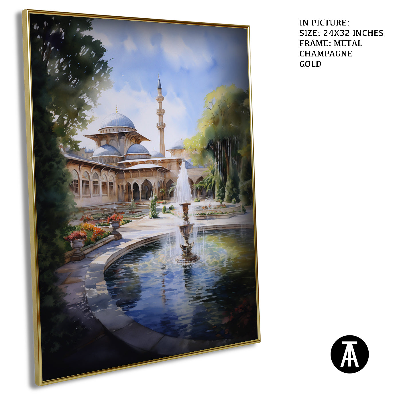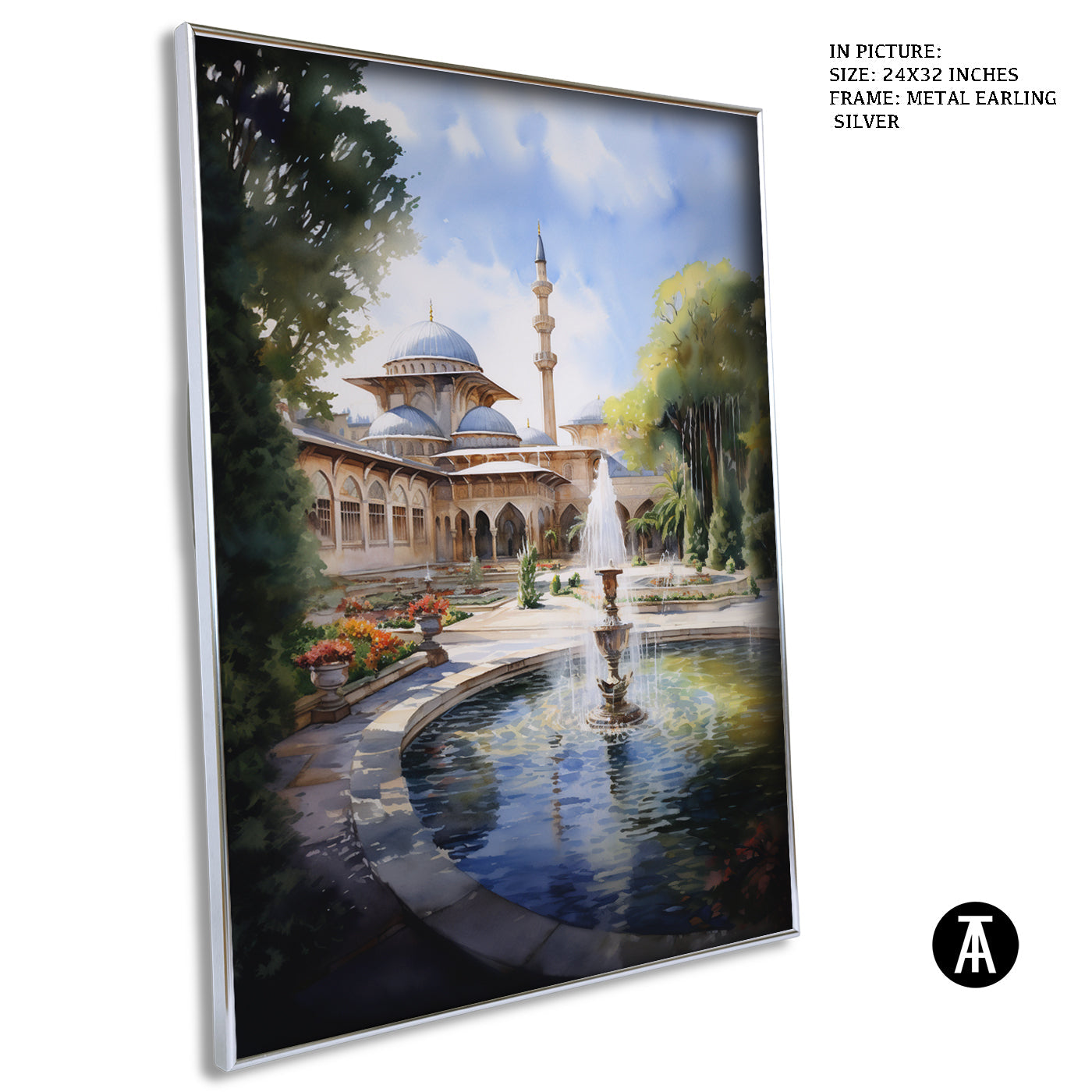 Immerse yourself in the regal history of Istanbul with a framed artwork featuring the majestic Topkapi Palace. This luxurious piece seamlessly blends luxury decor and historical charm, making it an ideal addition to your wall art collection. Elevate your interior design with the opulence and cultural significance of this iconic Istanbul landmark.