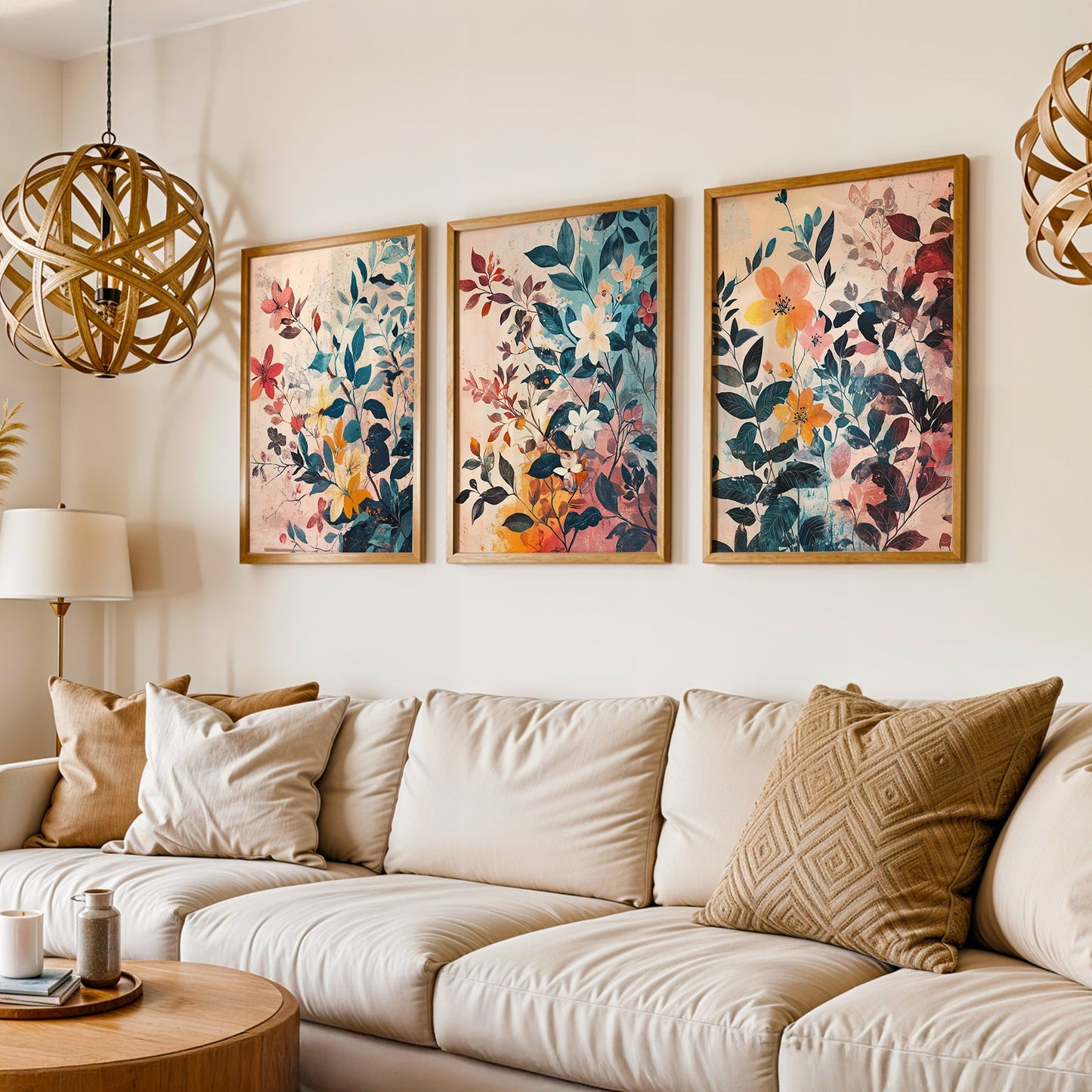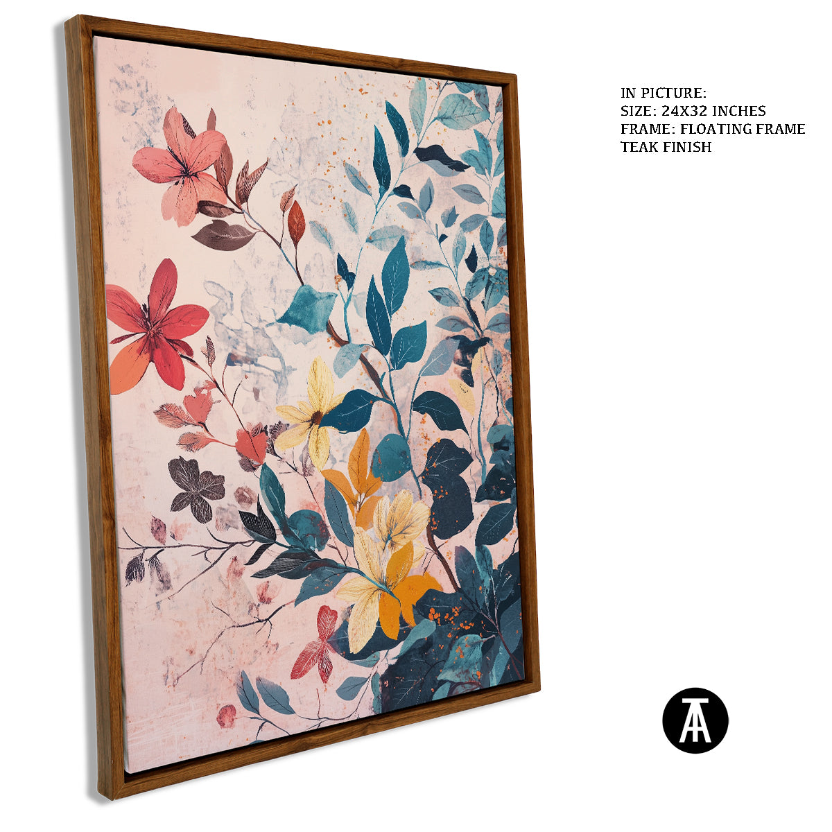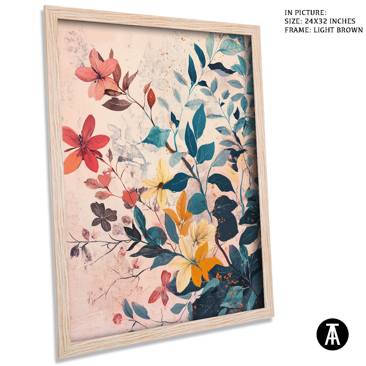 A beautiful arrangement of vibrant botanicals fills this artwork with life and color. The bold, detailed flowers and lush greenery create a stunning visual effect. Perfect for adding a lively and cheerful touch to your space. A delightful piece for those who enjoy vibrant, natural art.