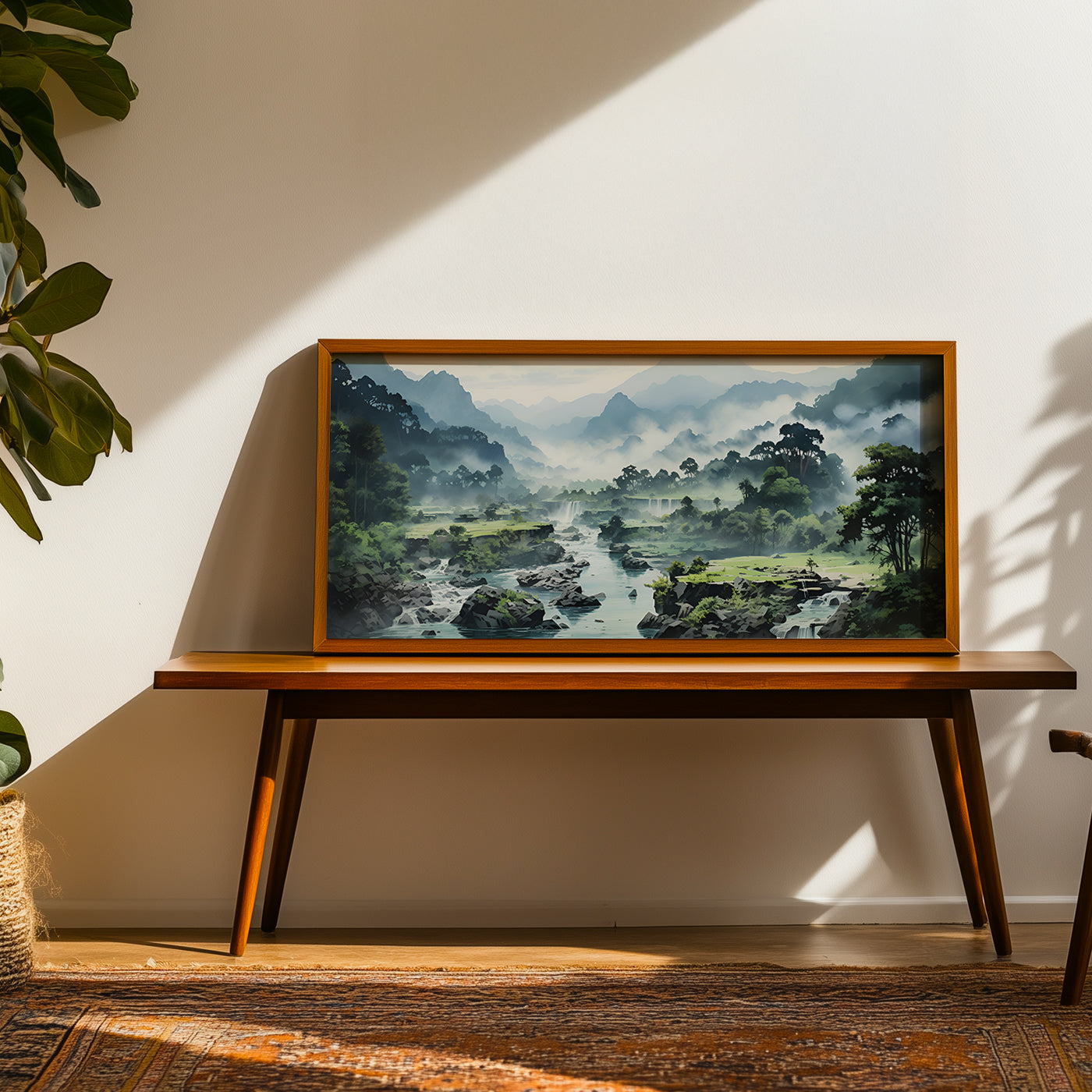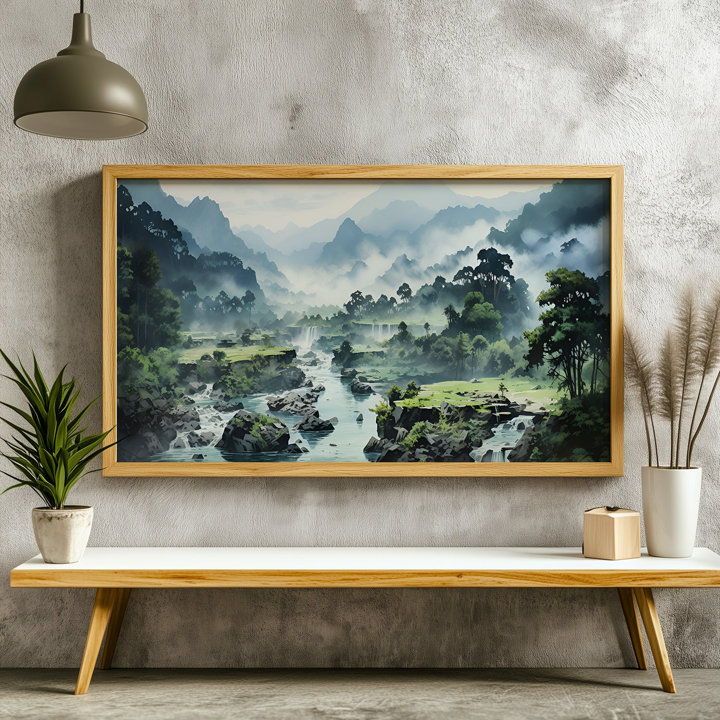 Immerse yourself in the breathtaking waterfalls of Meghalaya with our Indian art collection, capturing the cascading beauty and natural wonders of this enchanting northeastern region.